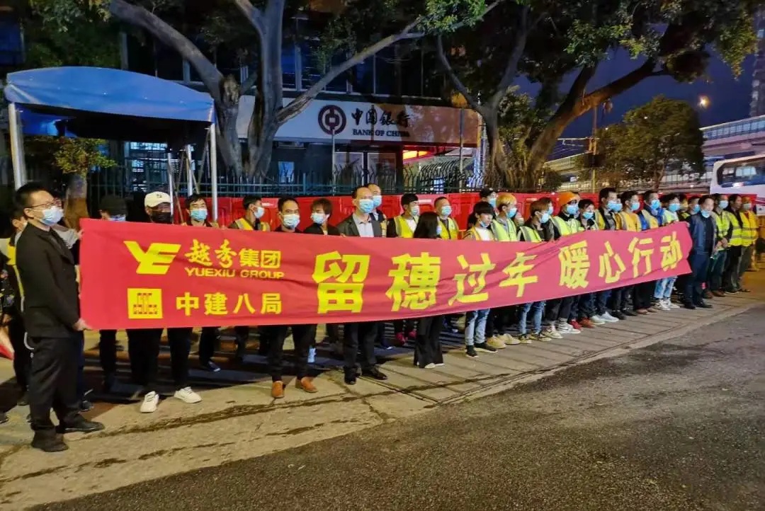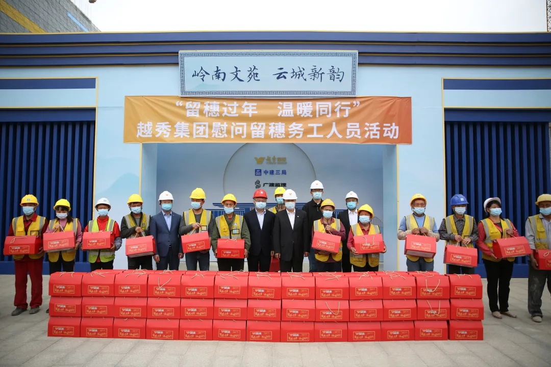 越秀集团承担着多项广东省、广州市重要工程的建设任务。春节将至,工程承建方中建八局和三局的数百名施工人员坚决响应国家“就地过年”的号召留在了工地,在做好疫情防控基础上,继续推进安全生产和工程建设。