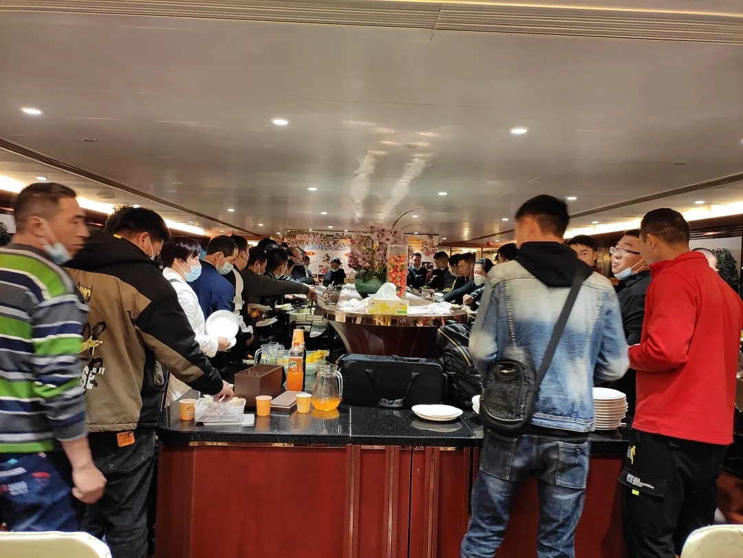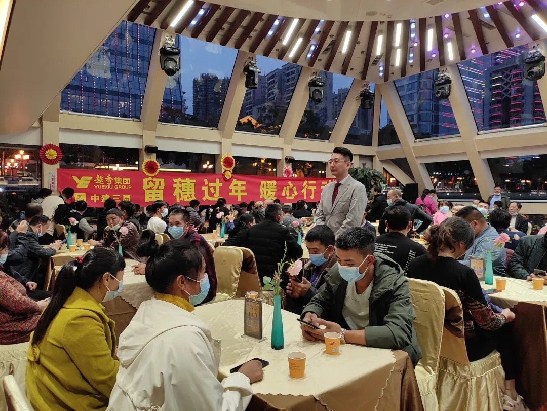 2月12日,牛年大年初一晚上,为做好留穗过年工人的服务保障工作,越秀集团联合中建八局和中建三局,组织了在穗过年的800多名外来务工人员参加珠江夜游及新年自助餐,为工友们送上来自广州的过年“暖心套餐”。
