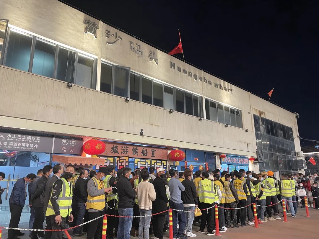 2月12日的大年初一晚上,越秀集团租下了5条船,与中建三局、八局共同组织留穗过年的800位务工人员参加珠江夜游。