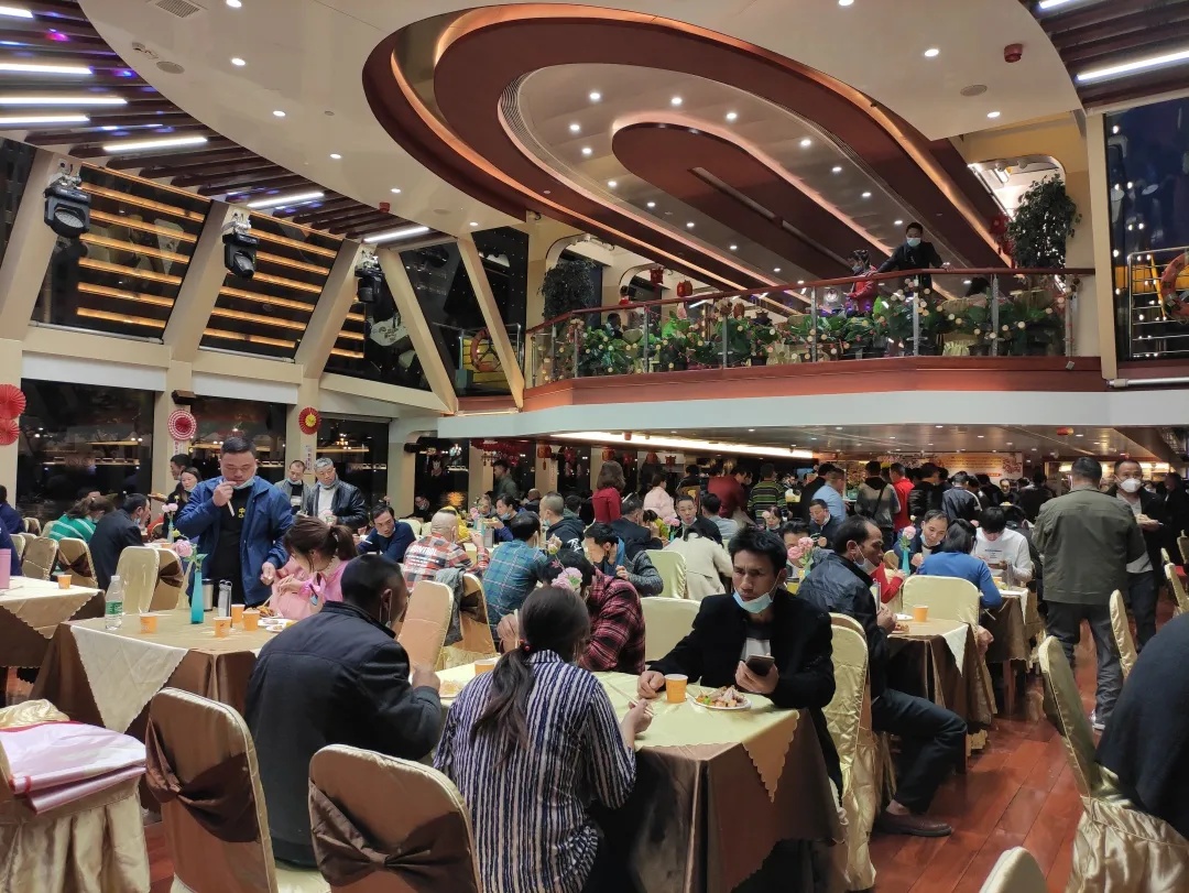 在严格做好疫情防控措施的前提下,工友们在珠江游船上一起品尝广州美食,畅谈美好生活,度过了一个特殊、难忘而又温暖的春节。在餐桌上,越秀集团下属皇上皇品牌提供的广式腊肉腊肠,代表了广州的特色美味和年味,尤其受到了工友们的青睐和喜爱。